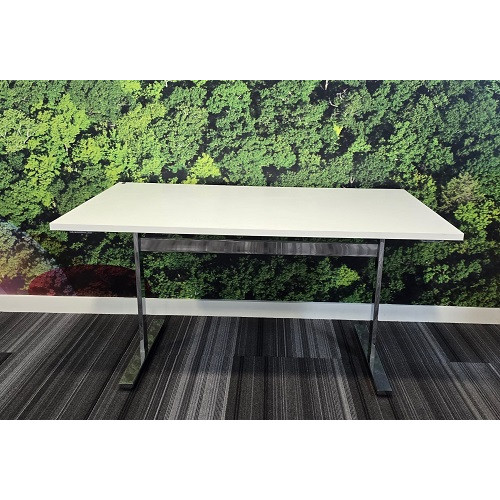 Frame / Legs: Chrome frame. Legs in a “T-leg” style giving the table stability but a lighter visual footprint.