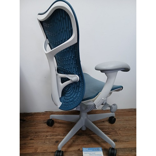 Herman Miller Mirra 2 Chair – Dark Turquoise / White Frame – Fully Adjustable Arms