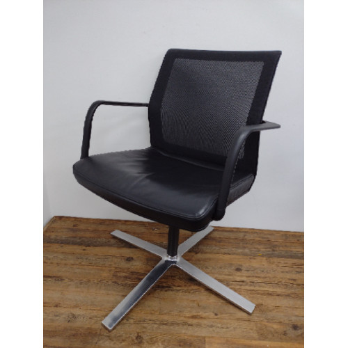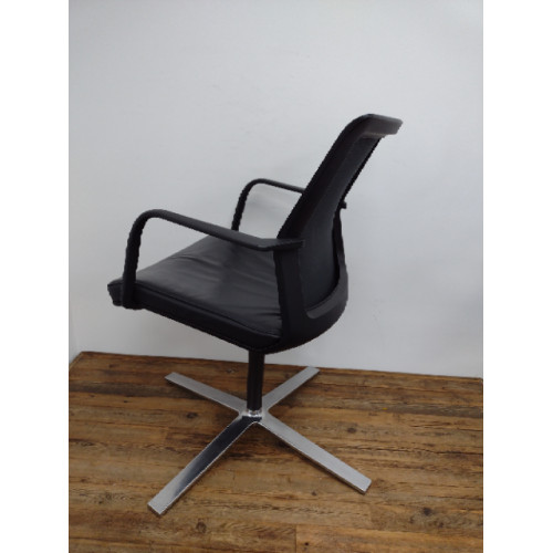 A stylish a comfortable addition to the conference room, this chair in black leather exudes a good impression.